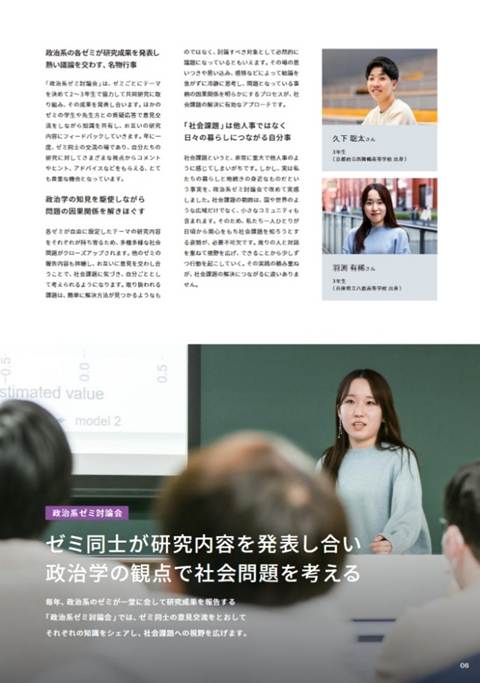 <ごあいさつ> (注)上記の法学部パンフレット写真の内、浜中ゼミ生は羽渕有稀さん[2026年現在、大学院法学研究科修士課程学生]だけで、久下聡太さんは別のゼミです。